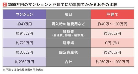 「マンション」と「戸建て」、3000万円の物件でかかる生涯コストはどっちが高い!? → 結果wwwww