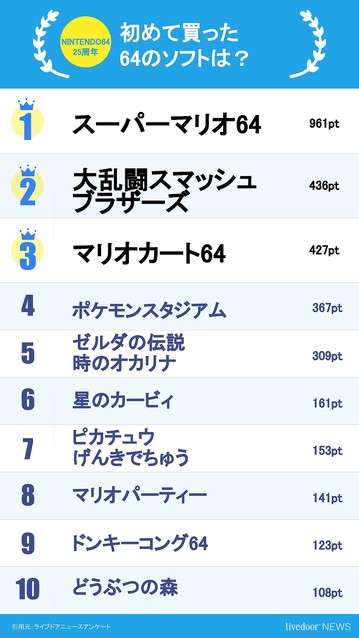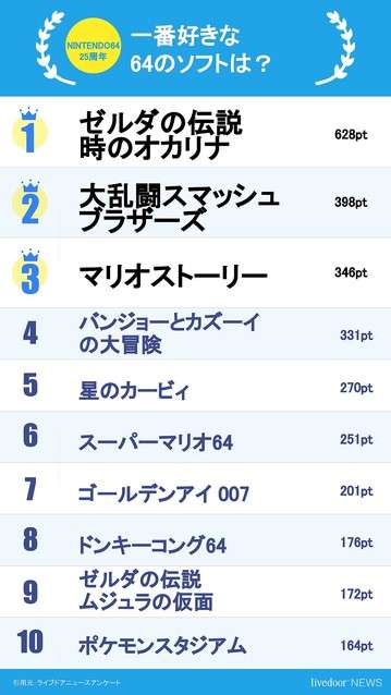 「NINTENDO64」発売25周年記念!みんなの好きなソフト1位は…?