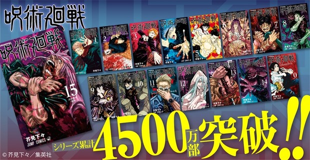『呪術廻戦』シリーズ累計発行部数4500万部突破(C)芥見下々/集英社 人気漫画『呪術廻戦』のコミックスが、度重なる重版でシリーズ累計発行部数4500万部(デジタル版含む)を突破したことが21日、集英社より発表された。2020年5月時点では累計450万部だったため、テレビアニメの放送でさらに注目されたこともあって、累計が10倍になるなど驚異的なペースで売り伸ばしている。(省略)全文
