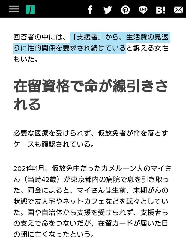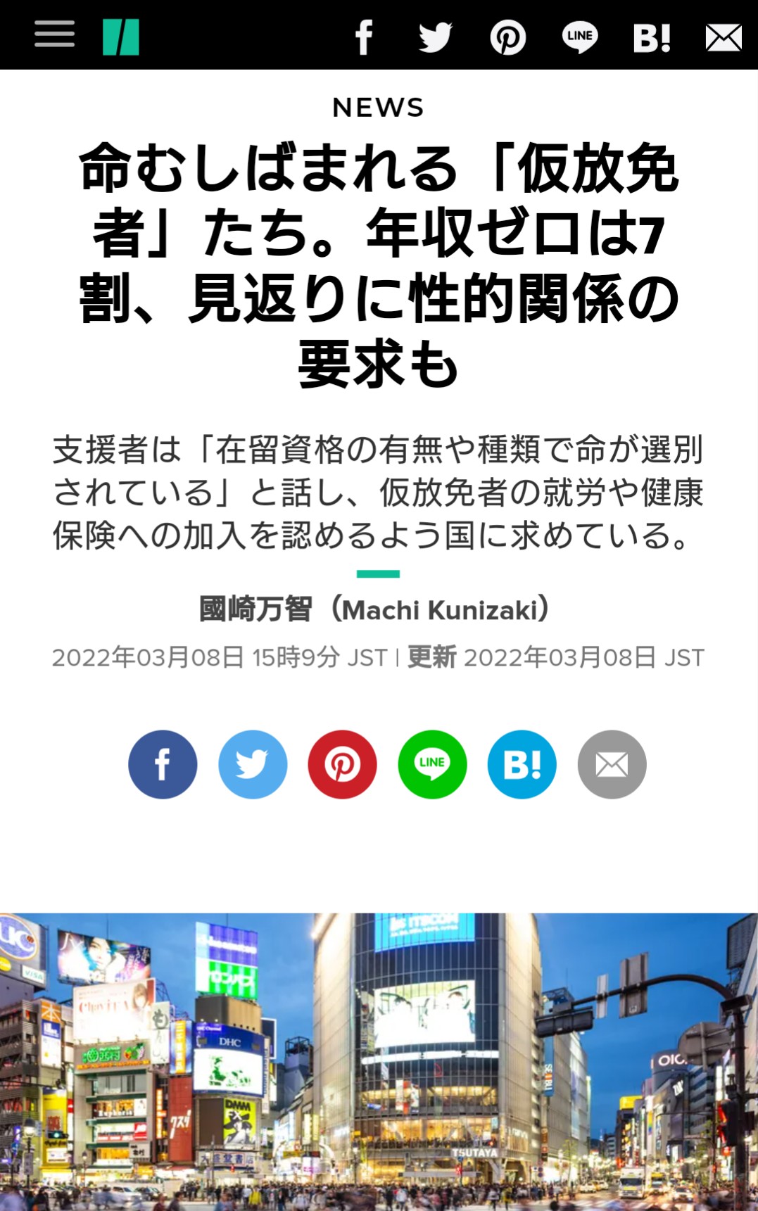 ソース元命むしばまれる「仮放免者」たち。年収ゼロは7割、見返りに性的関係の要求もhttps://www.huffingtonpost.jp/entry/story_jp_620250c4e4b0b69cfe94424d転載元スレッド:http://hayabusa3.2ch.sc/test/read.cgi/news/1646954220/