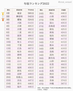 都道府県年収ランキング 全国3位 (東京1位)