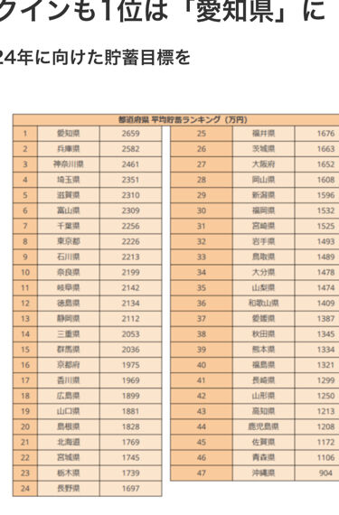 貯蓄額 1位(東京7位)