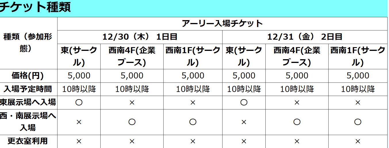 新コミックマーケット99チケット販売について