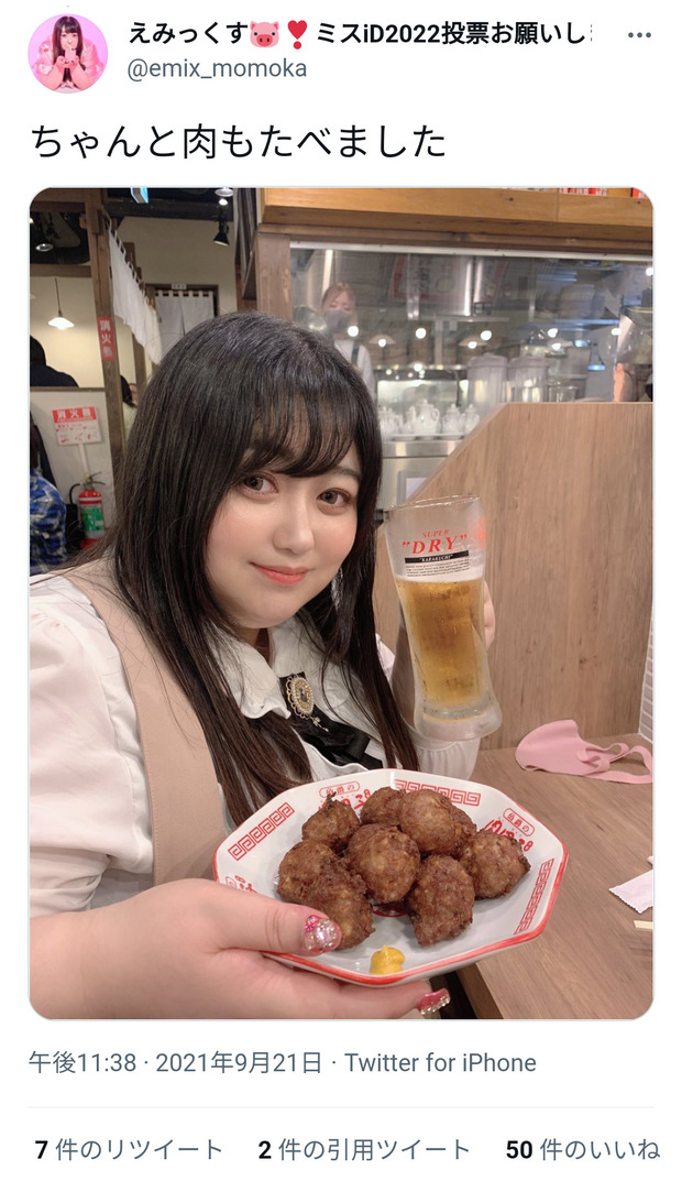ちゃんと肉もたべました pic.twitter.com/oymMUeB4K9— えみっくす🐷❣️ミスiD2022投票お願いします (@emix_momoka) September 21, 2021転載元スレッド:https://swallow.5ch.net/test/read.cgi/livejupiter/1633077059/