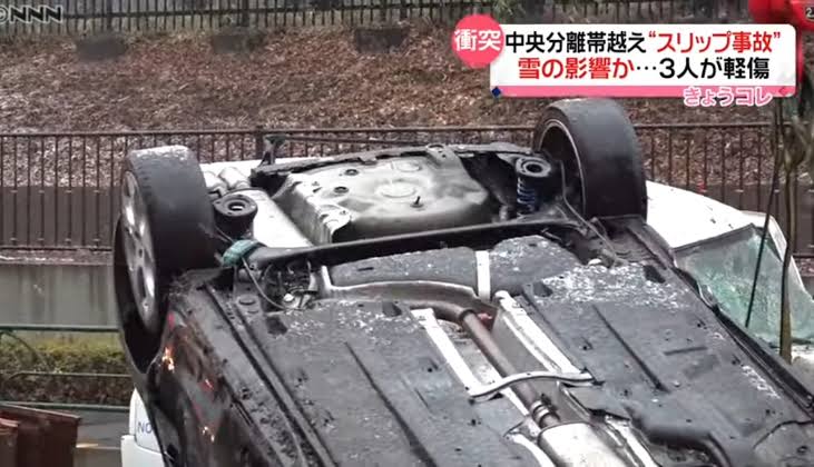 【悲報】ノーマルタイヤさん、盛大に事故る