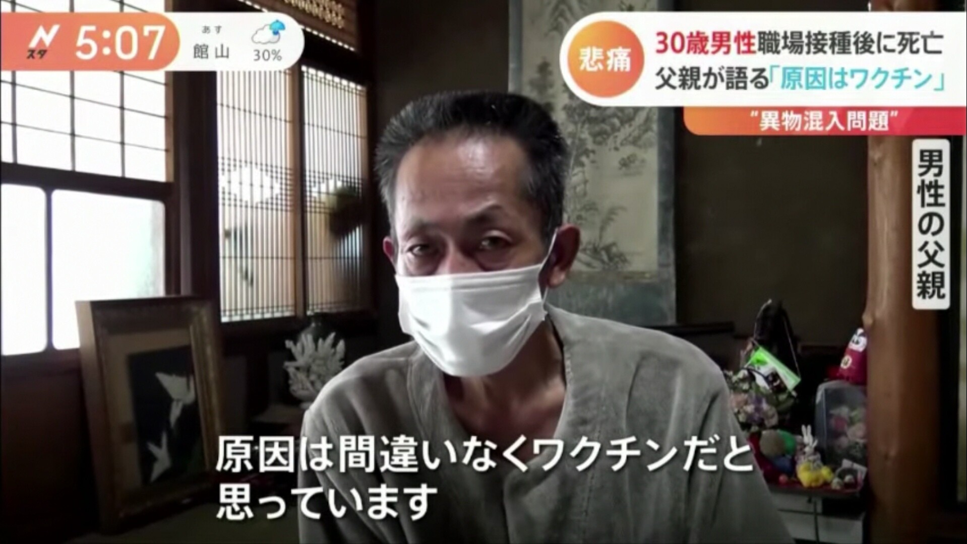 【悲報】モデルナ接種後に死亡30歳男性の父「原因は間違いなくワクチン。はっきりさせたい」
