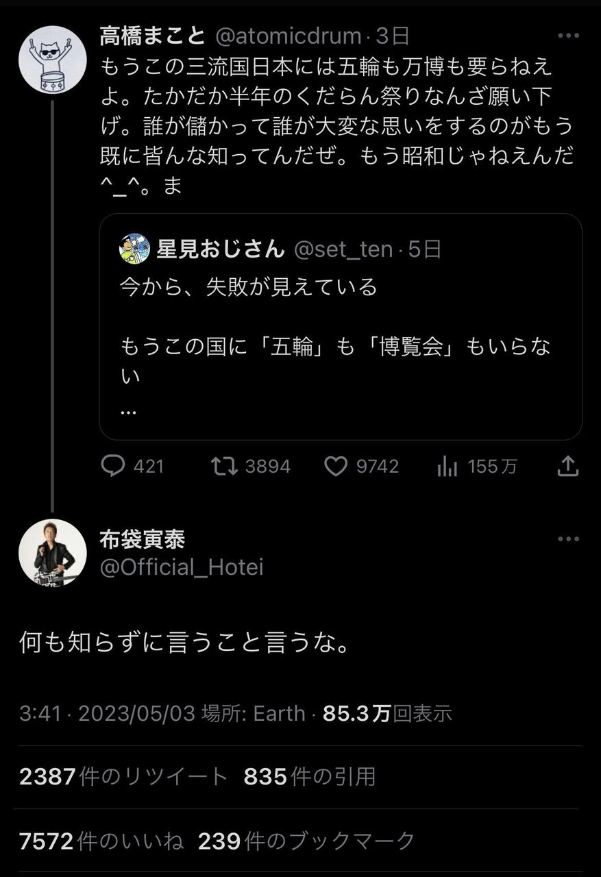 【悲報】伝説のロックバンドBOOWYの元メンバー二人、Twitterで喧嘩する