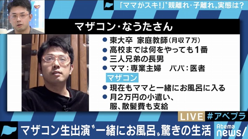 【悲報】急増するマザコン 東大卒33歳、母親と一緒にお風呂、他にも母親と一緒に風俗も…