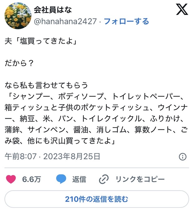 【悲報】旦那「塩買ってきたよ