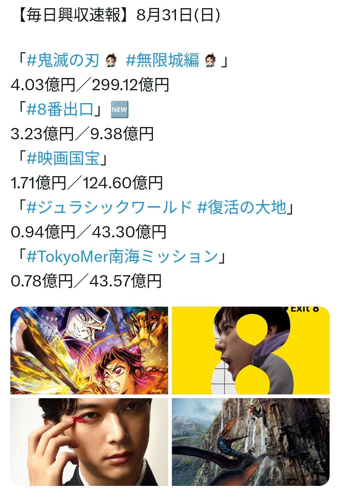 【悲報】映画『8番出口』…鬼滅の刃に惨敗wwwwww