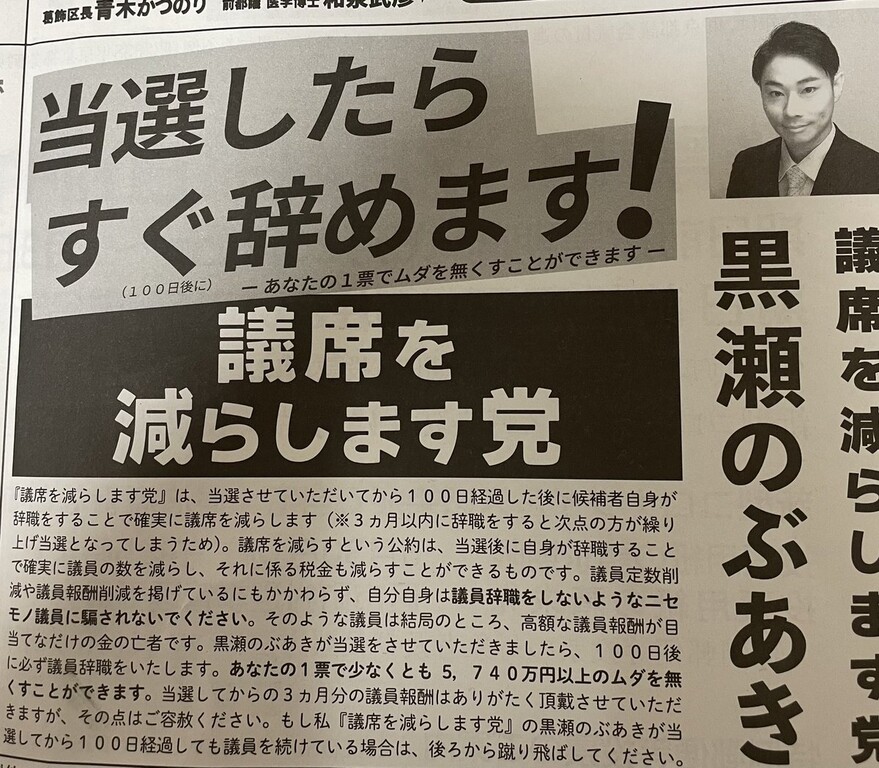 都議会議員選挙の葛飾区選挙区、ネタ枠の全国大会になってて有権者の私は頭を抱えています