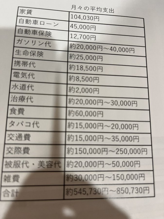 面白すぎるからずっと撮っておいてるんだけどこれお金なくて養育費払えないと言ってきた子父が自ら(頼んでもないのに)出してきた毎月の支出の内容。 pic.twitter.com/UblEWggtuI— みかん (@paperstarmai) April 19, 2025 2 名前:名無しさん@おーぷん[sage] 投稿日:25/04/21(月) 08:28:44 ID:Kh1Gぺたっ!w3 名前:名無しさん@おーぷん[] 投稿日:25/04/21(月) 08:28:57 ID:DNn1タバコ高い4 名前:名無しさん@おーぷん[] 投稿日:25/04/21(月) 08:29:05 ID:1QBU交際費(キャバクラ代)続きを読む