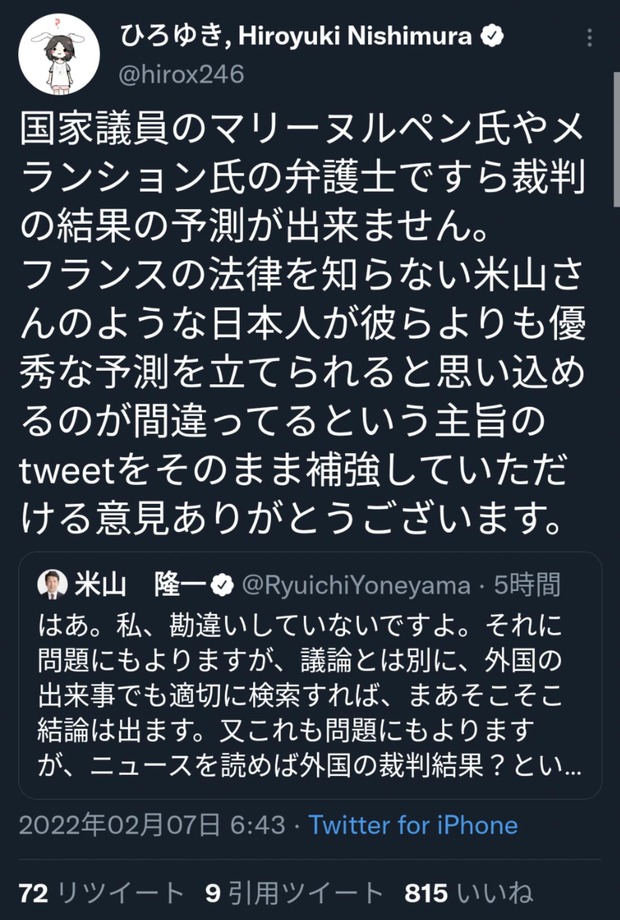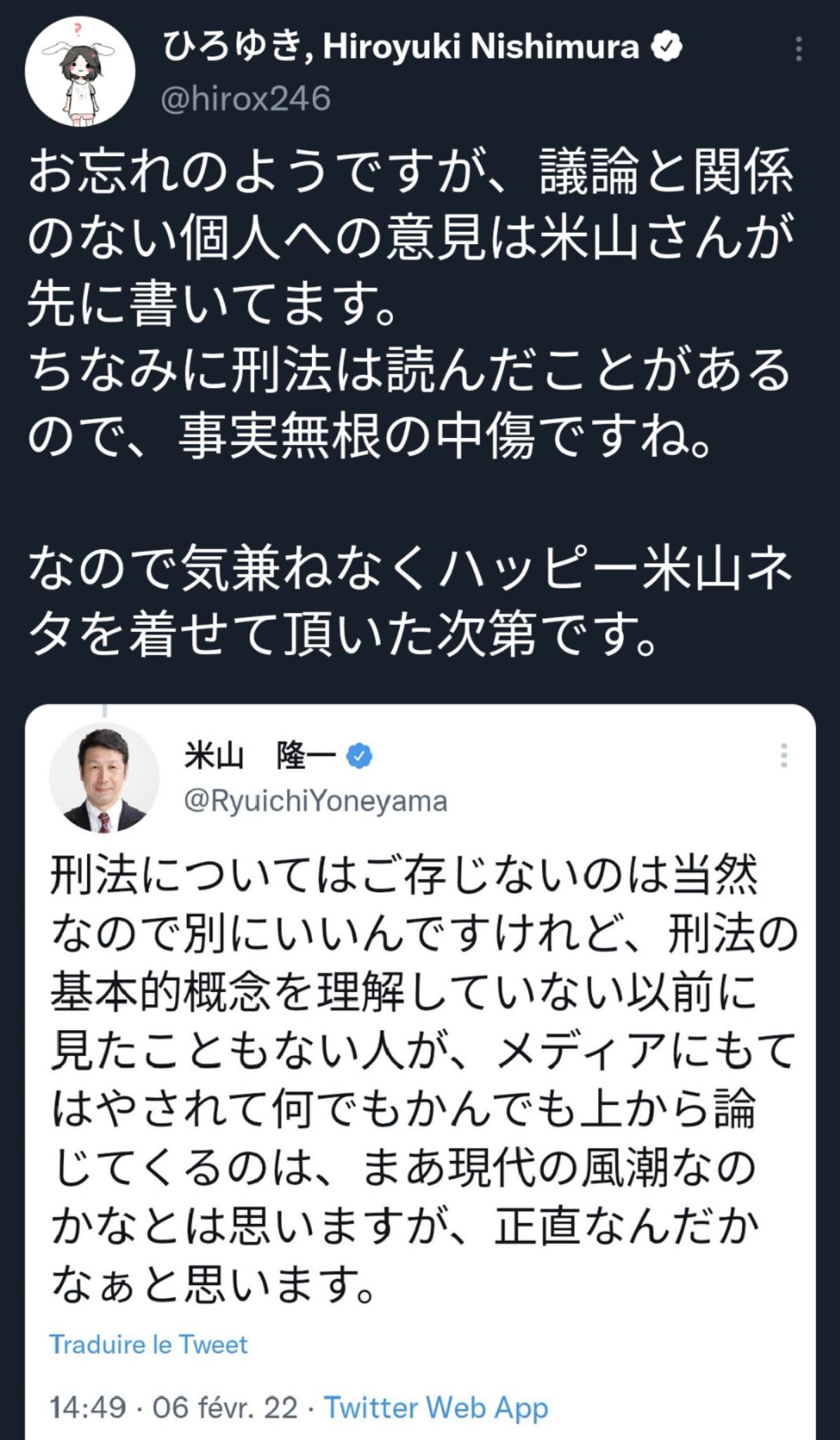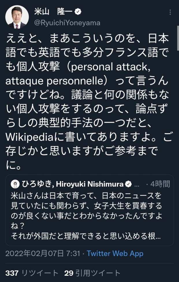 ↓米「過去の関係ない話を持ち出して、こういうのを『個人攻撃』と言うんでしょうね😅」