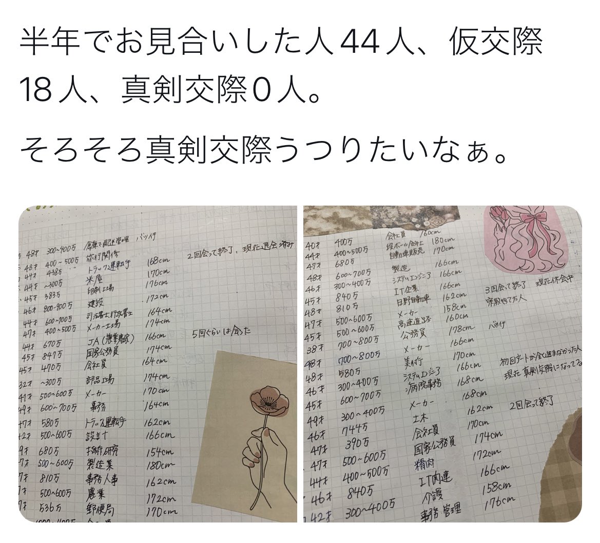 [] 投稿日:23/02/12(日) 21:46:52 ID:qSSf全員ロースペジジイすぎて震えた...これが結婚相談所か...
