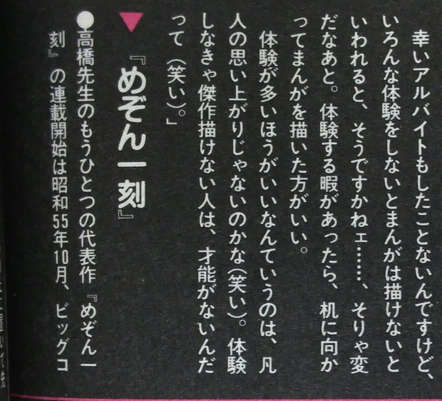 高橋留美子「人生経験に頼らないと漫画を描けない人は才能が無い(笑)」