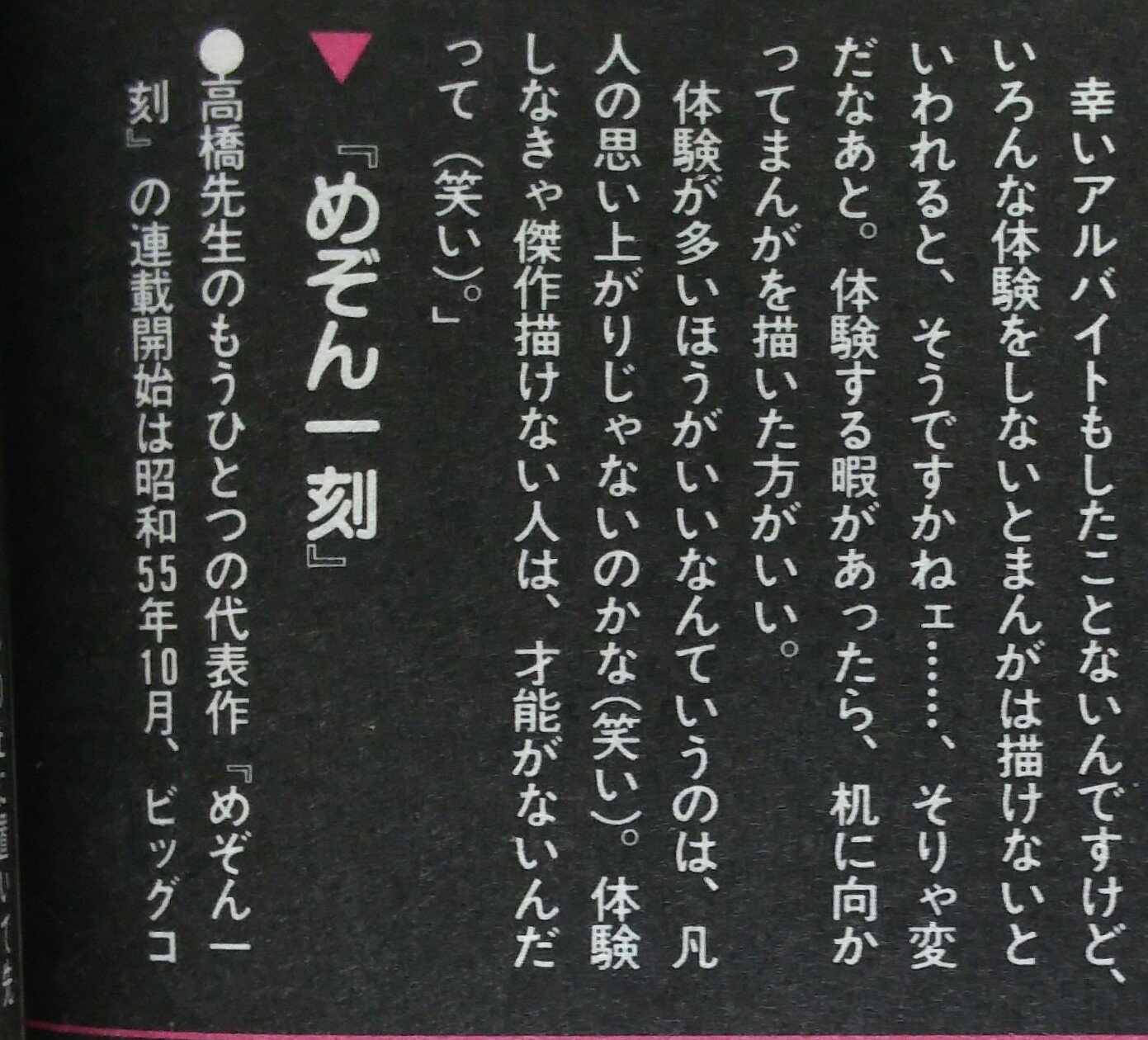 高橋留美子「『体験しないと漫画は描けない』はおかしい。体験する暇があったら漫画を描いた方がいい」