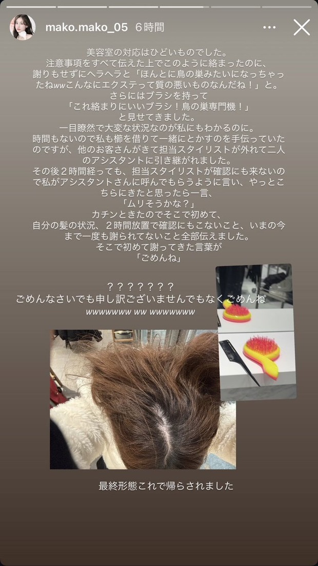 【悲報】髪に年100万かけてる女性、美容室で鳥の巣みたいにされる