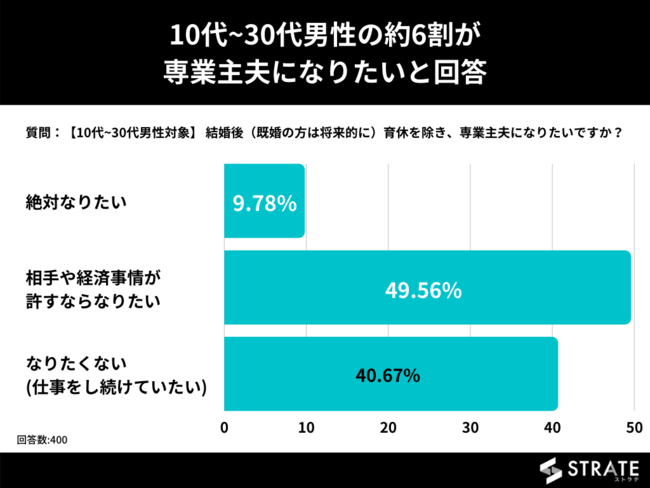 1 名前:名無しさん@おーぷん[] 投稿日:22/02/07(月)22:08:14 ID:RabP結婚後(既婚の方は将来的に)、 専業主夫になりたいかというアンケートに対して最も多かった回答は、 「相手や経済事情が許すならなりたい」で49.56% でした。「絶対なりたい」と回答した方が9.78% だったので、 専業主夫になりたいと思っている男性が約6割もいることがわかります。