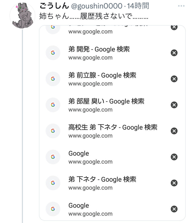 【悲報】Twitter民の姉、とんでもない検索履歴を残してしまう