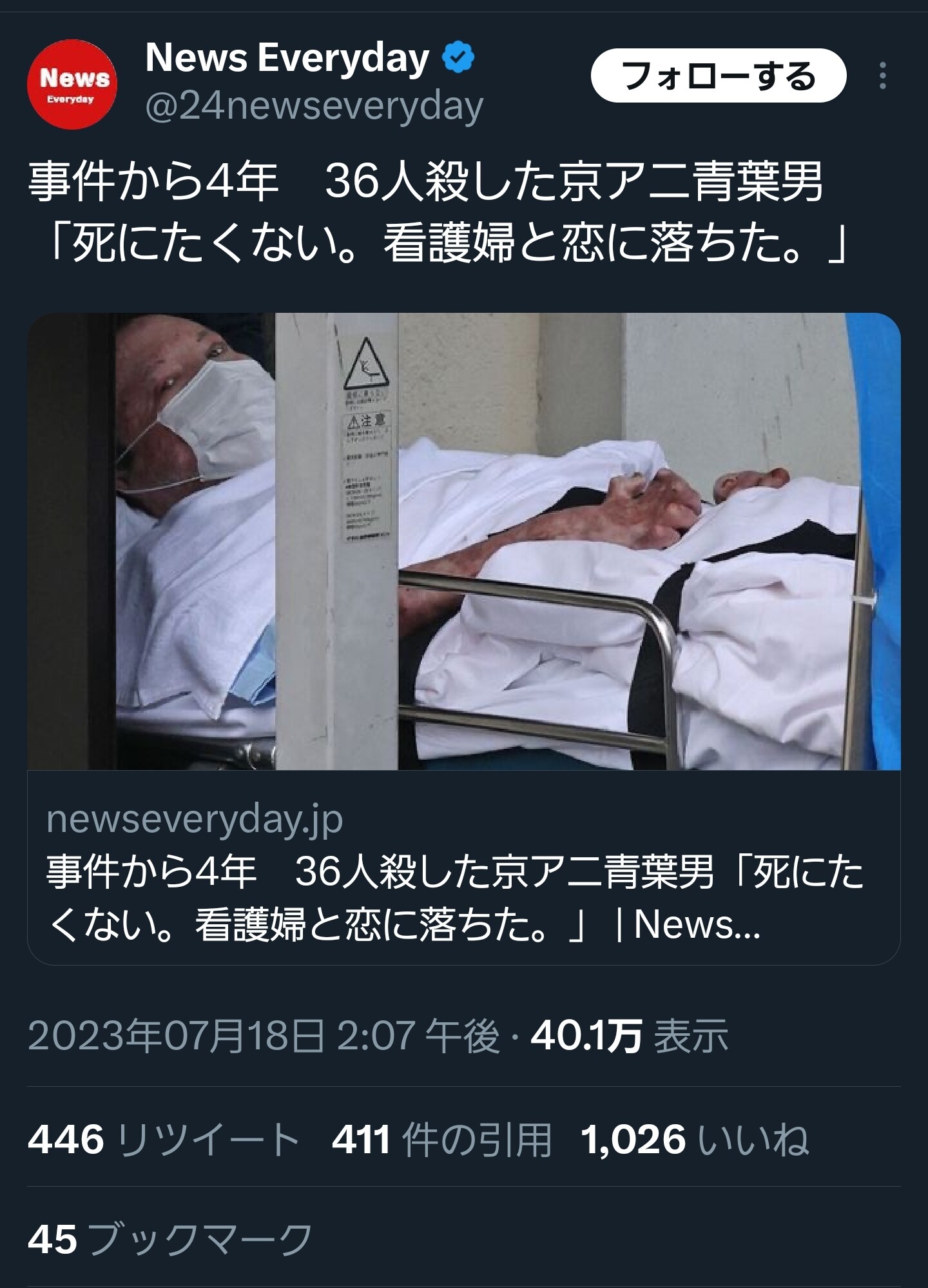 【感動】京アニ青葉「────死にたくない。産まれて、初めて、恋を、したんだ。」