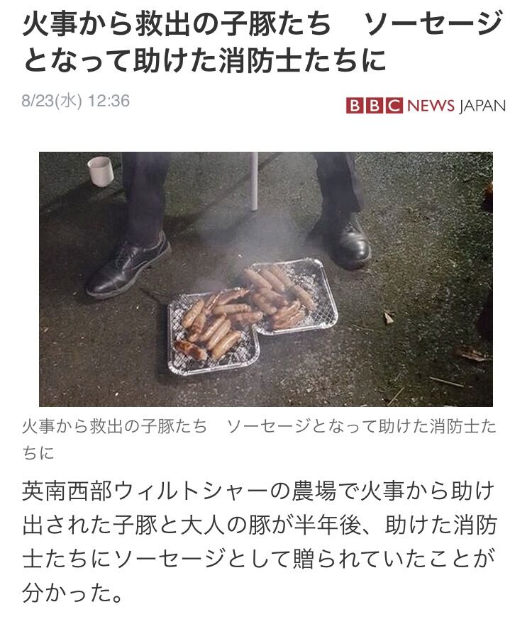【感動】火事から救出された子豚たち、ソーセージとなって助けた消防士たちに恩返し