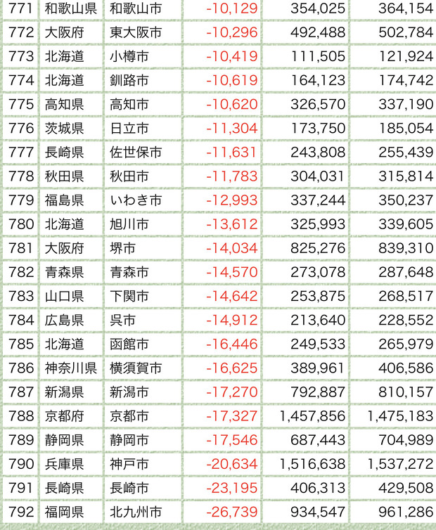 【明暗】日本で一番人口が増えた市は「福岡」一番減った市は「北九州」