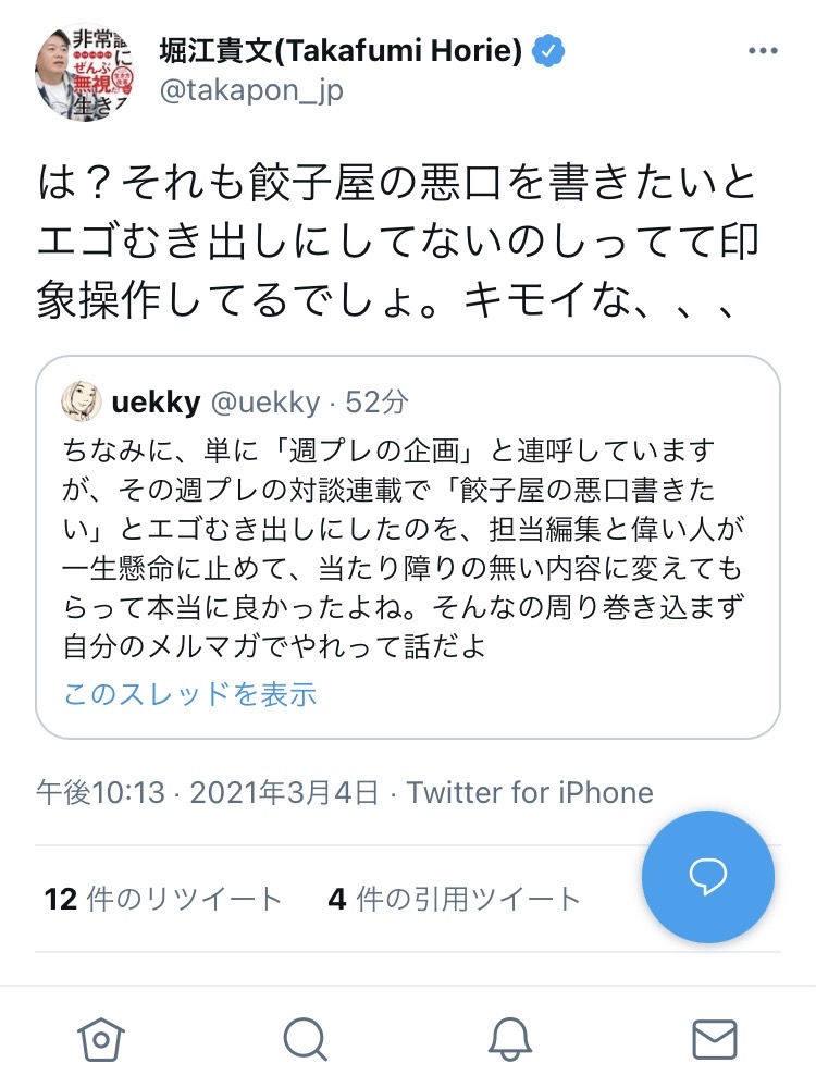 ちなみにひろゆきを真っ当だと思ったことはあまりありません。人を小馬鹿にしてイジることが生き甲斐の人だと思ってます。