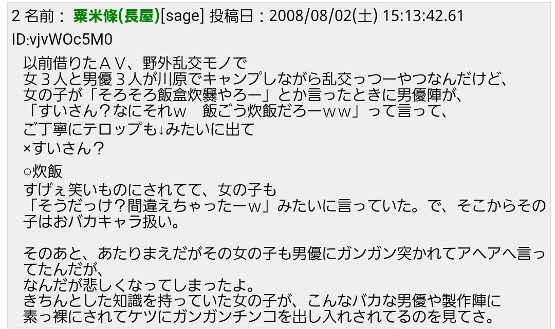 【朗報】伝説の『飯盒炊爨コピペ』のAV、本当にあったwwwwww