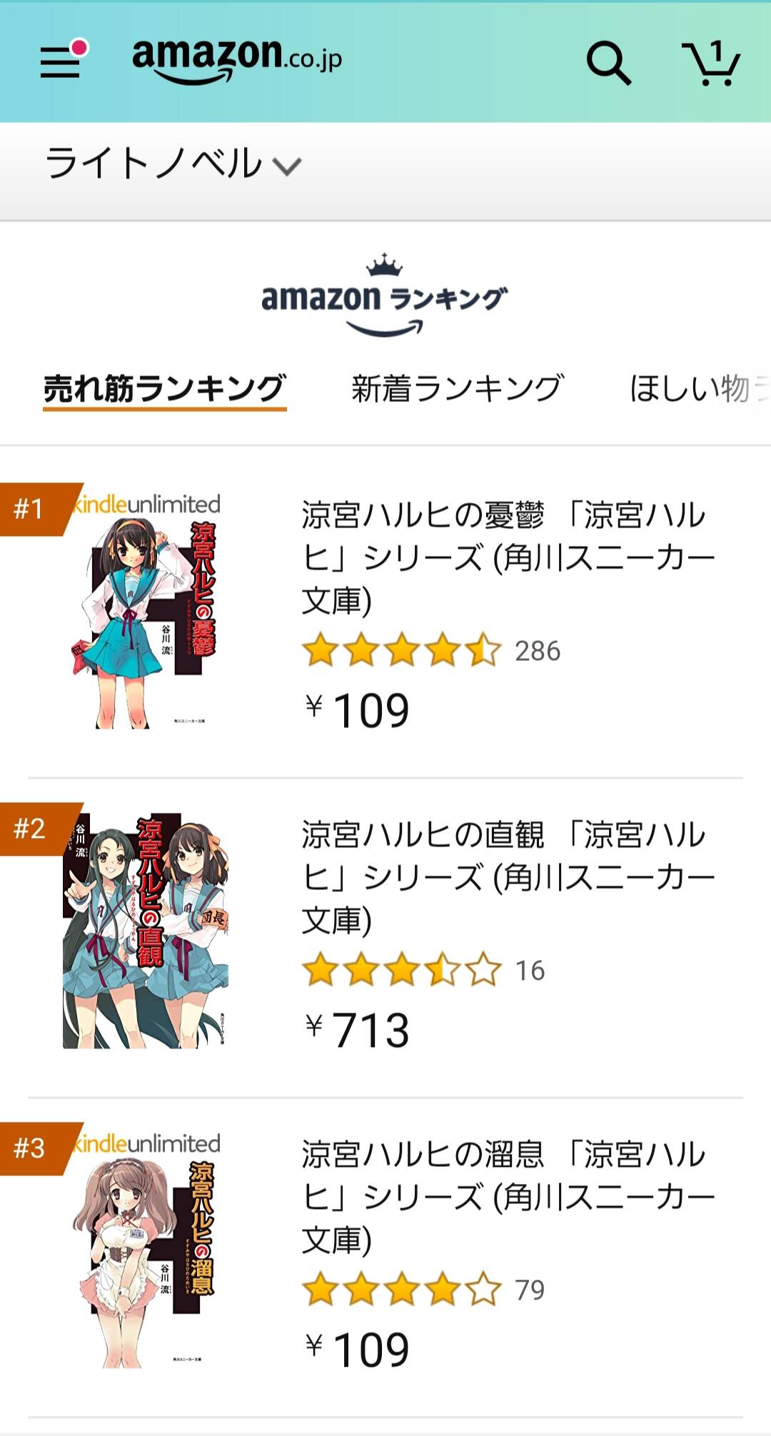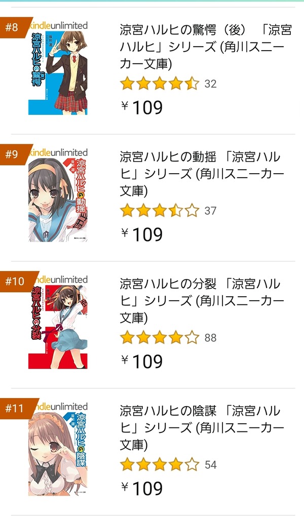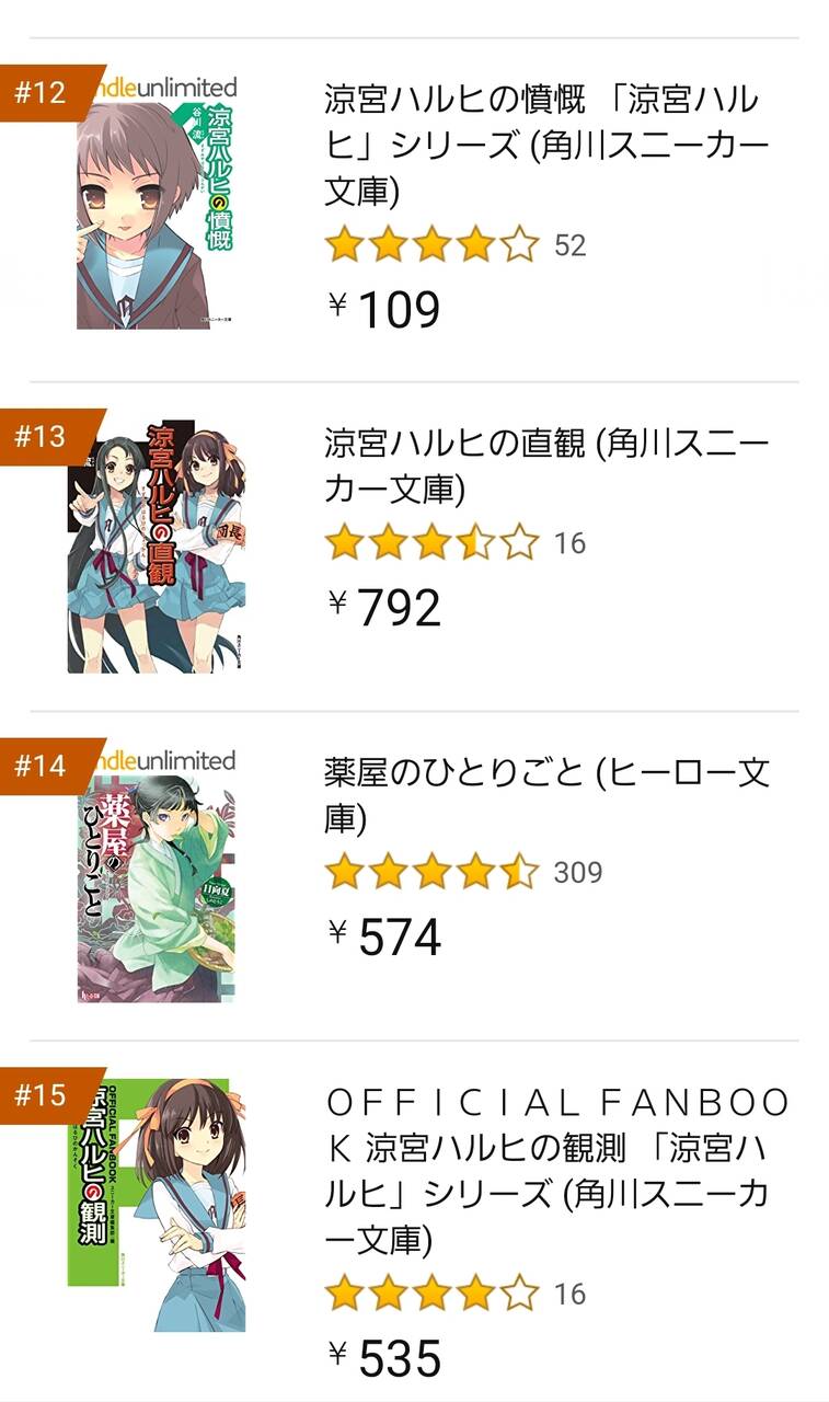 【画像】涼宮ハルヒ、売り上げランキング13位まで独占。 元『社会現象』の意地を見せるwww