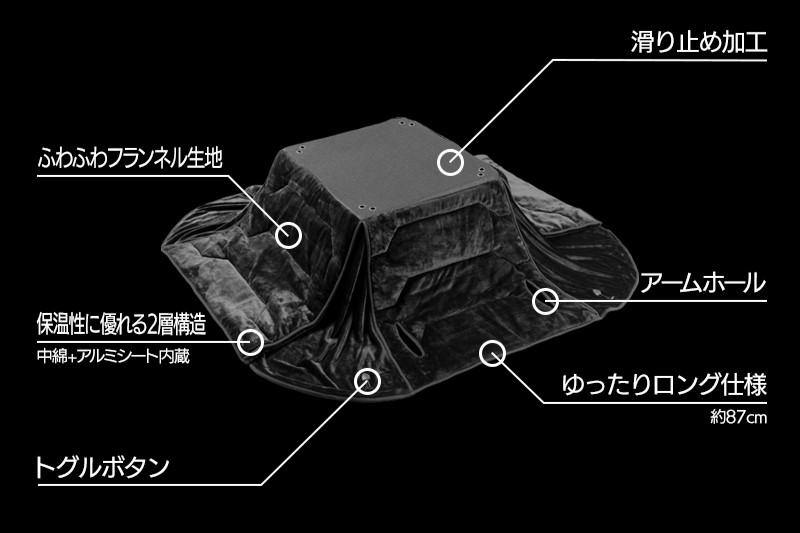 Bauhutte (バウヒュッテ) ゲーミング 着る こたつ 布団 BHK-2500KF-BK 230×250cm 手が出せるアームホール付き ブラック 黒 こたつテーブル こたつ布団 一人用こたつ 着るこたつ 長方形 正方形 一人暮らし
