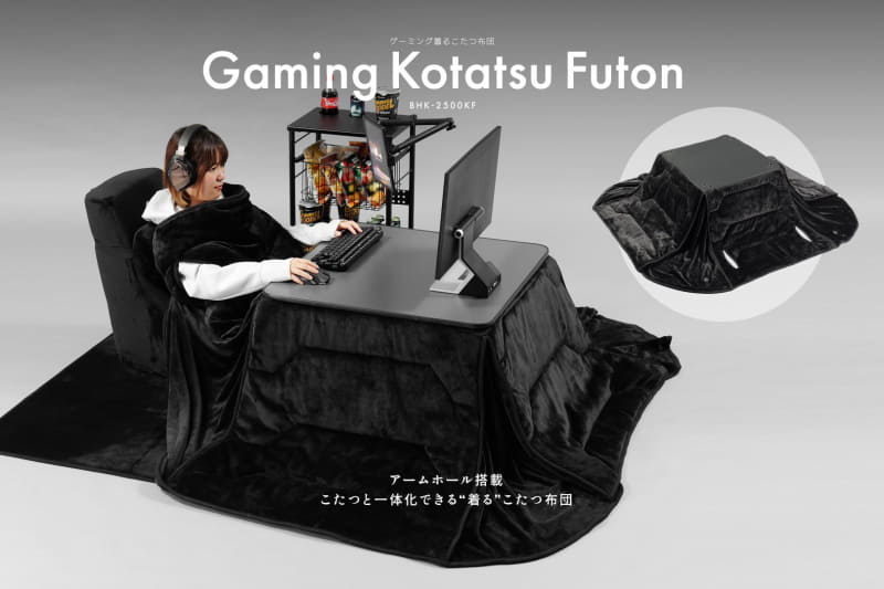 Bauhutte、こたつと一体化できるゲーミングこたつ布団 Bauhutteは、ゲーミング着るこたつ布団「BHK-2500KF」を発売した。価格は1万2,800円。 BHK-2500KFは、ゲーム操作用の腕出し穴(アームホール)と背中で留められるトグルボタンを備えた、幅230cm、奥行き250cmのゲーマー向けこたつ布団。一般的なこたつ布団の約1.5倍の大判設計で、首元まで覆えるロング仕様となっている。