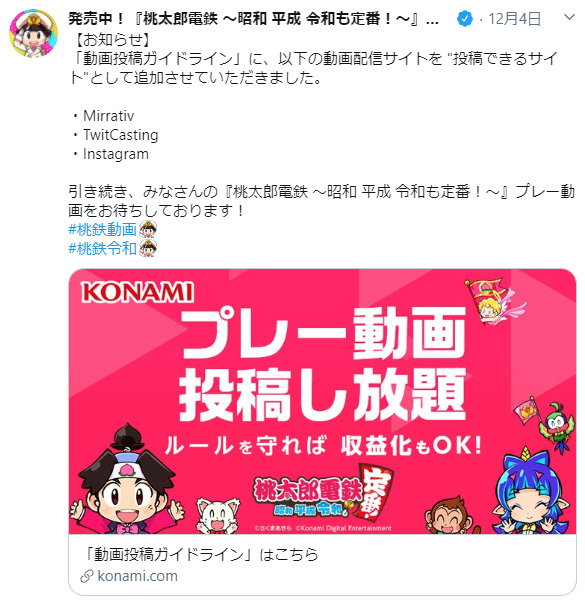(省略)しかしゲーム専用配信サイトの中国資本のMildom(ミルダム)が頑なに追加されていない。実はコナミはミルダムは全面的に配信許可をしていない。コナミだけでなく任天堂やサイゲーム、カプコンなど大手もミルダムだけでは禁止処置をしている。その理由として「えらんでみるだむ」という機能に賭博性があるからではないかと言われていた。この件をミルダムに質問したところ、次のような回答が得られた(省略)全文