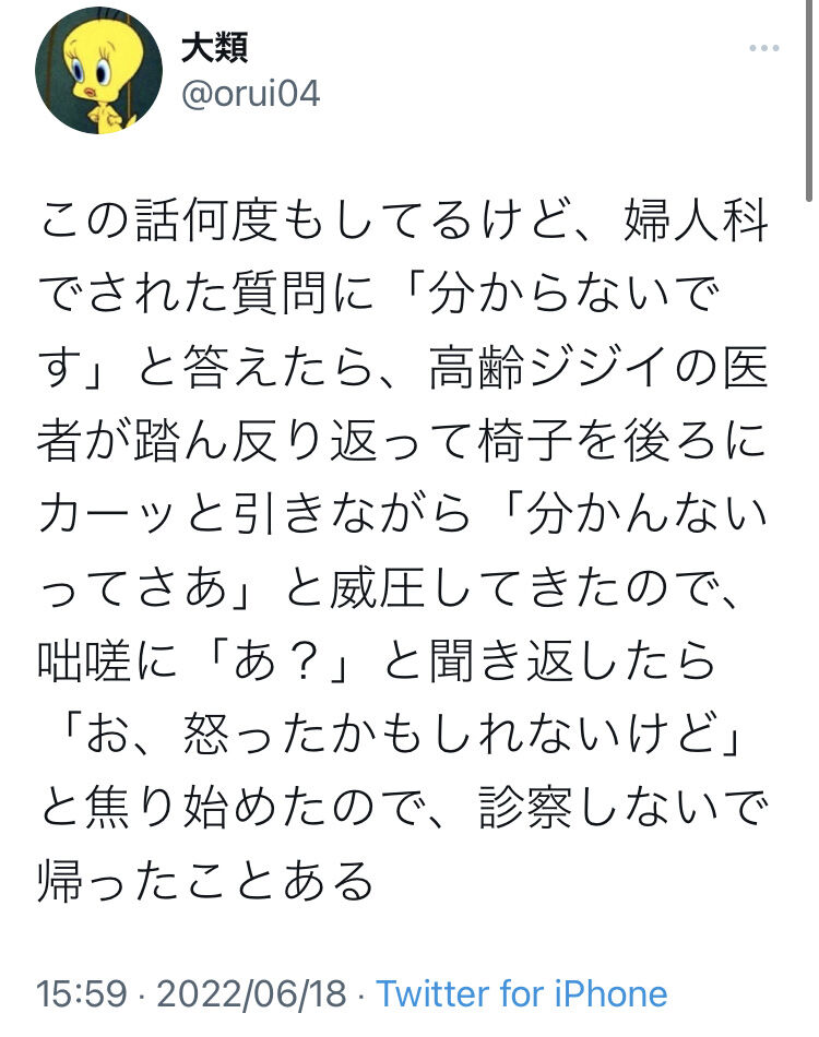 【朗報】Twitter女さん、婦人科で威圧してきたジジイの医者を成敗してしまう