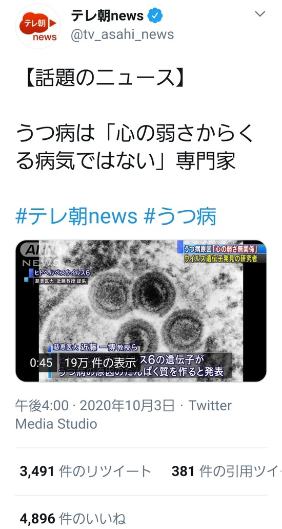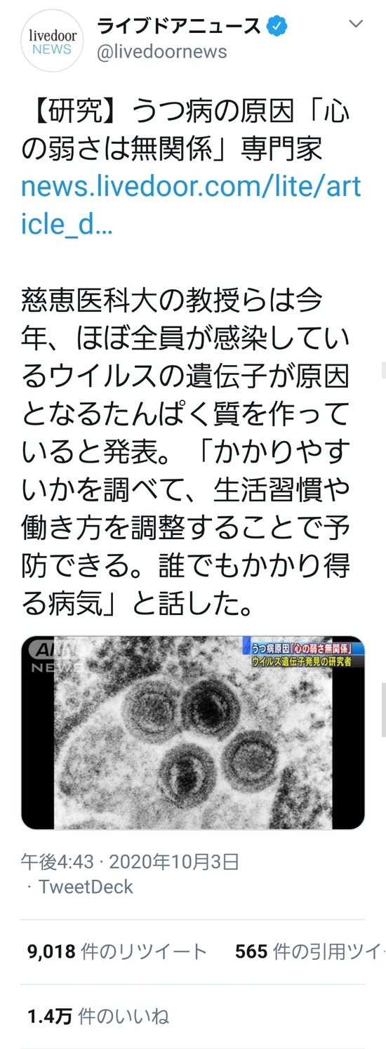 ヒトヘルペスウイルス6の遺伝子がうつ病の原因となるたんぱく質を作るらしい