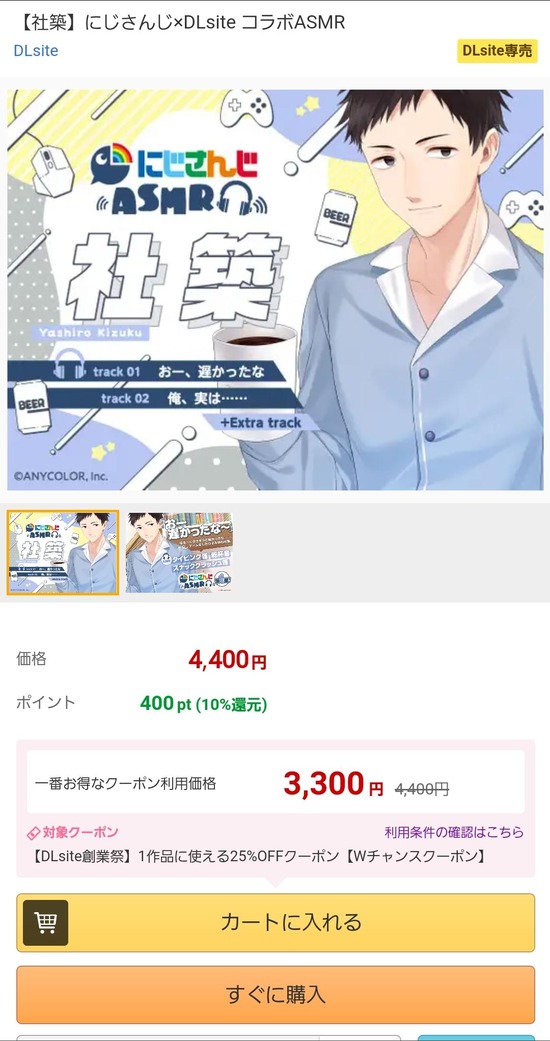 【画像】にじさんじ x DLSiteさん、約30分の音声を4400円で販売www