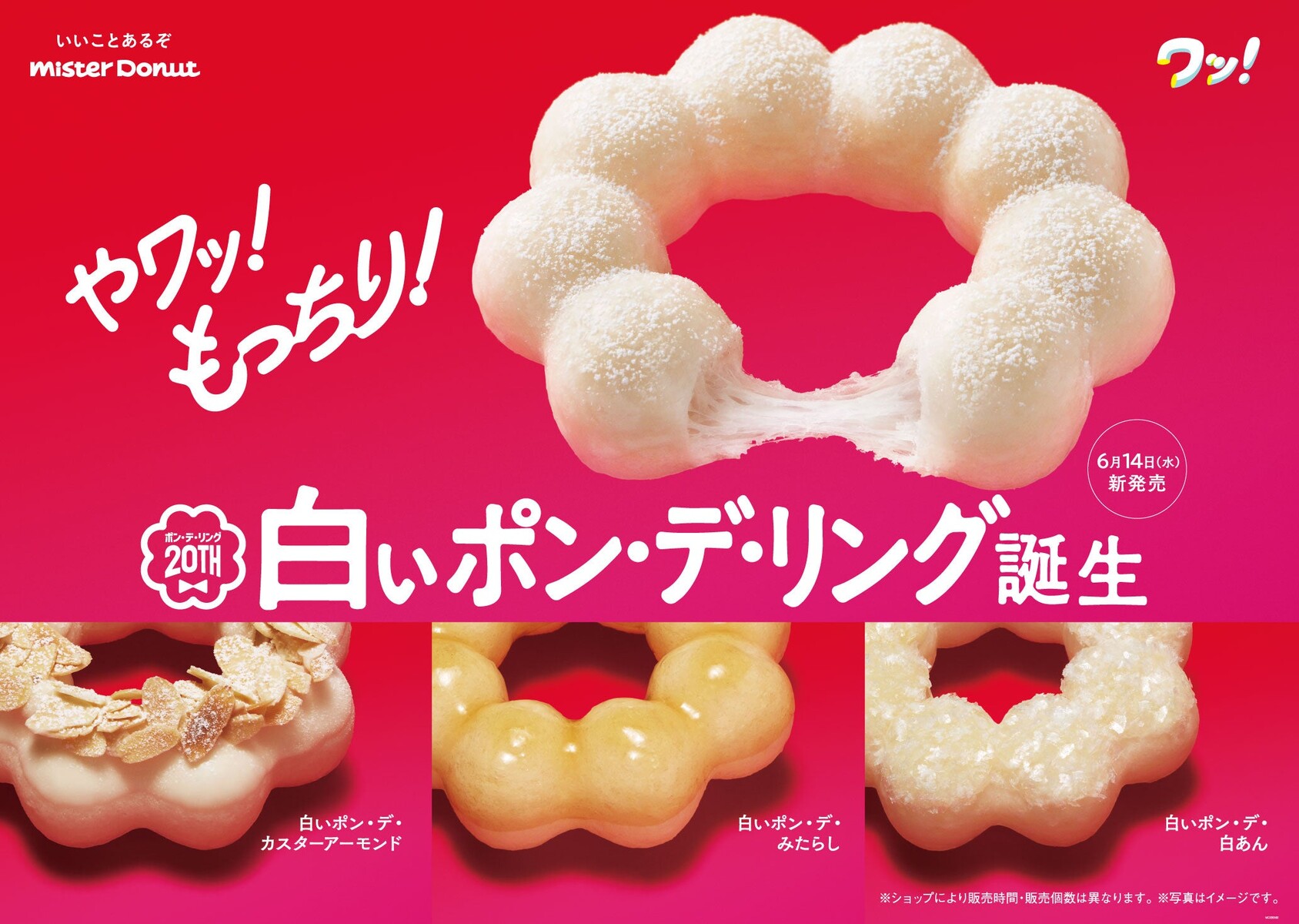 【ミスタードーナツ】6月14日(水)からポン・デ・リング20周年記念商品『白いポン・デ・リング』期間限定発売
