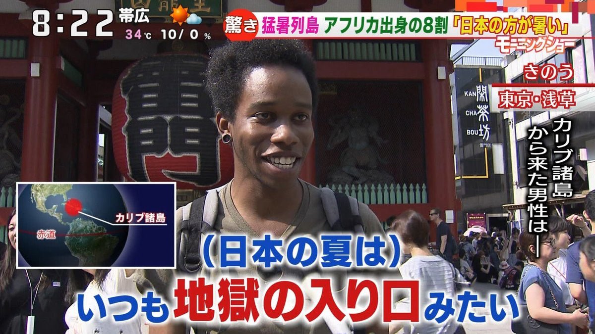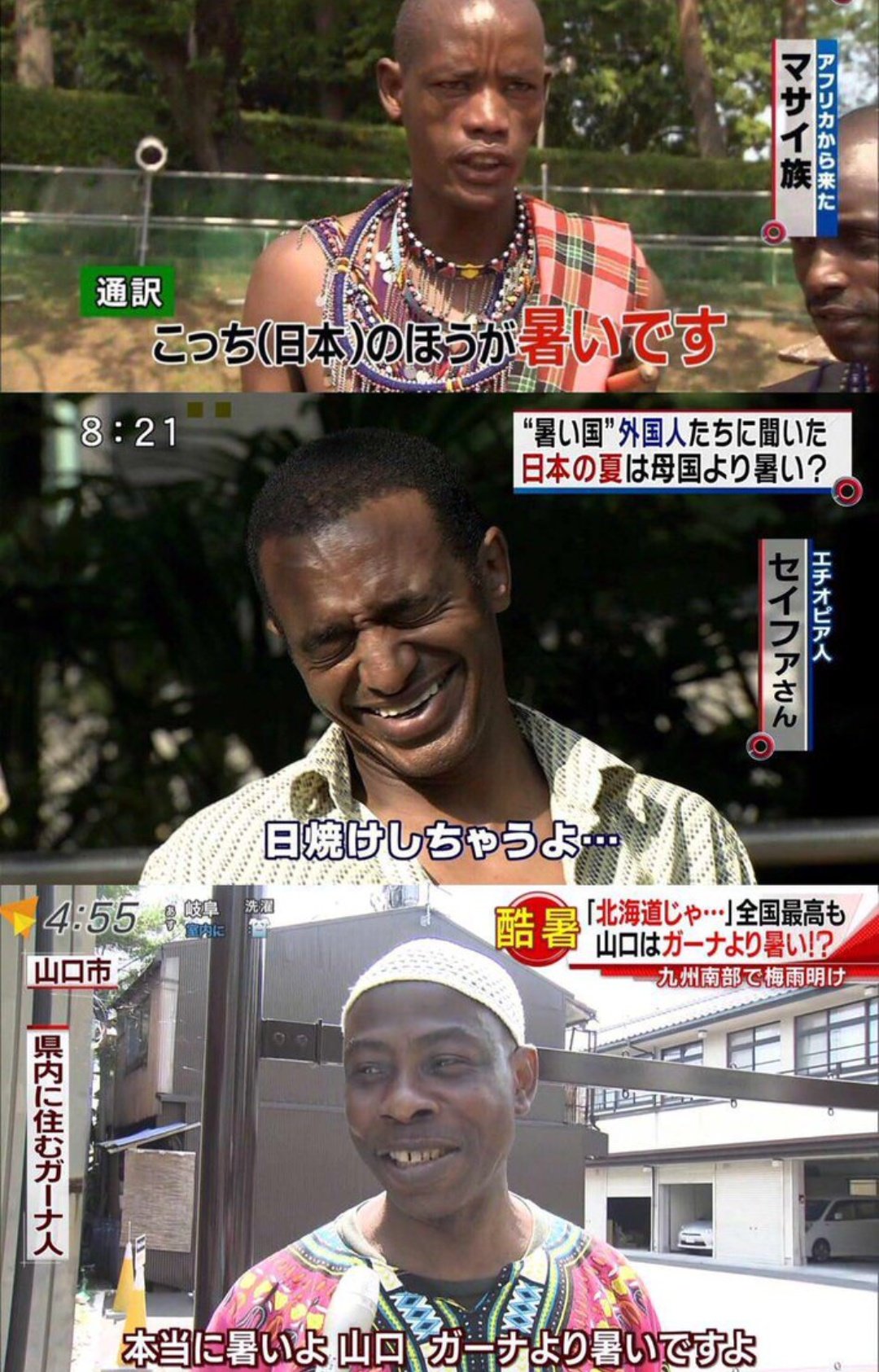 【画像】アフリカ、日本より涼しかった。在日アフリカ人の8割以上が「母国より日本の方が暑い」と回答・・・