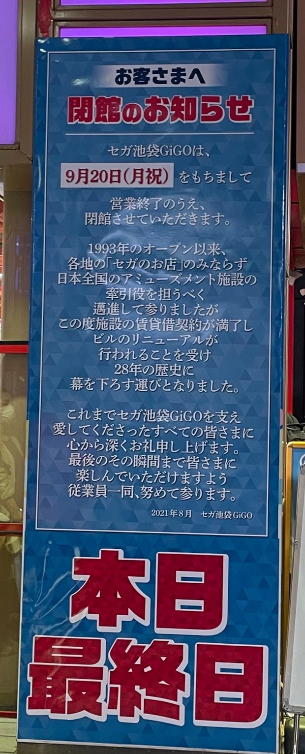 【LIVE】28年間の感謝を込めて!セガ池袋GiGO閉館セレモニー(YouTubeLive)https://www.youtube.com/watch?v=mRaI9N_UxV0転載元スレッド:http://hayabusa3.2ch.sc/test/read.cgi/news/1632147018/