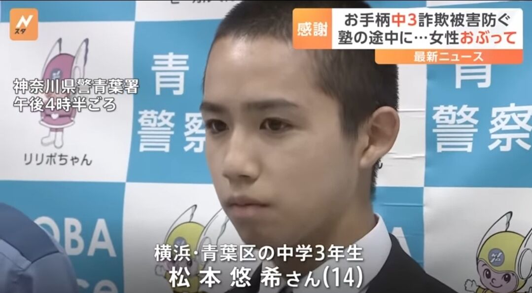 【画像】イケメン中学生、オレオレ詐欺からお婆さんを守って表彰されるwwwww