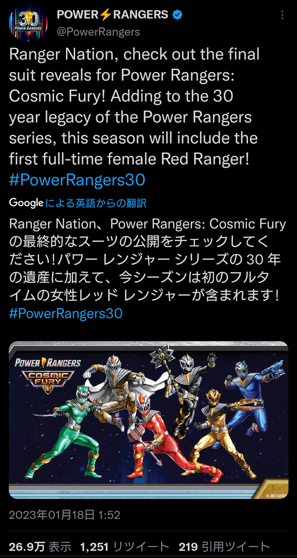 4:ななし:2023/01/23(月) 07:46:51.54 ID:tdA76ti/0日本もシンケンレッドがいるからギリセーフ114:ななし:2023/01/23(月) 08:13:48.63 ID:tI+RSplwa>>4
