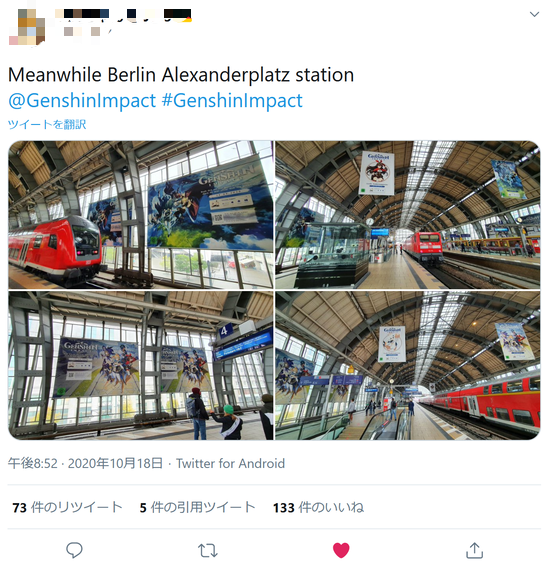 【画像】ゲーム「原神」広告、NYやベルリンの駅に登場wwww