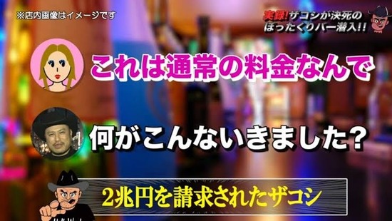 【画像】ハリウッドザコシショウさん、3千円ポッキリのバーで2兆円請求されるwww