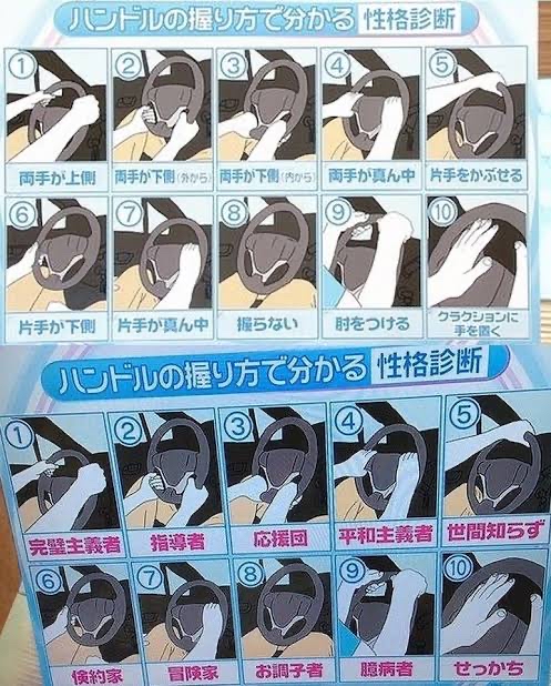 【画像】“ハンドルの握り方”で性格が分かるぞwww