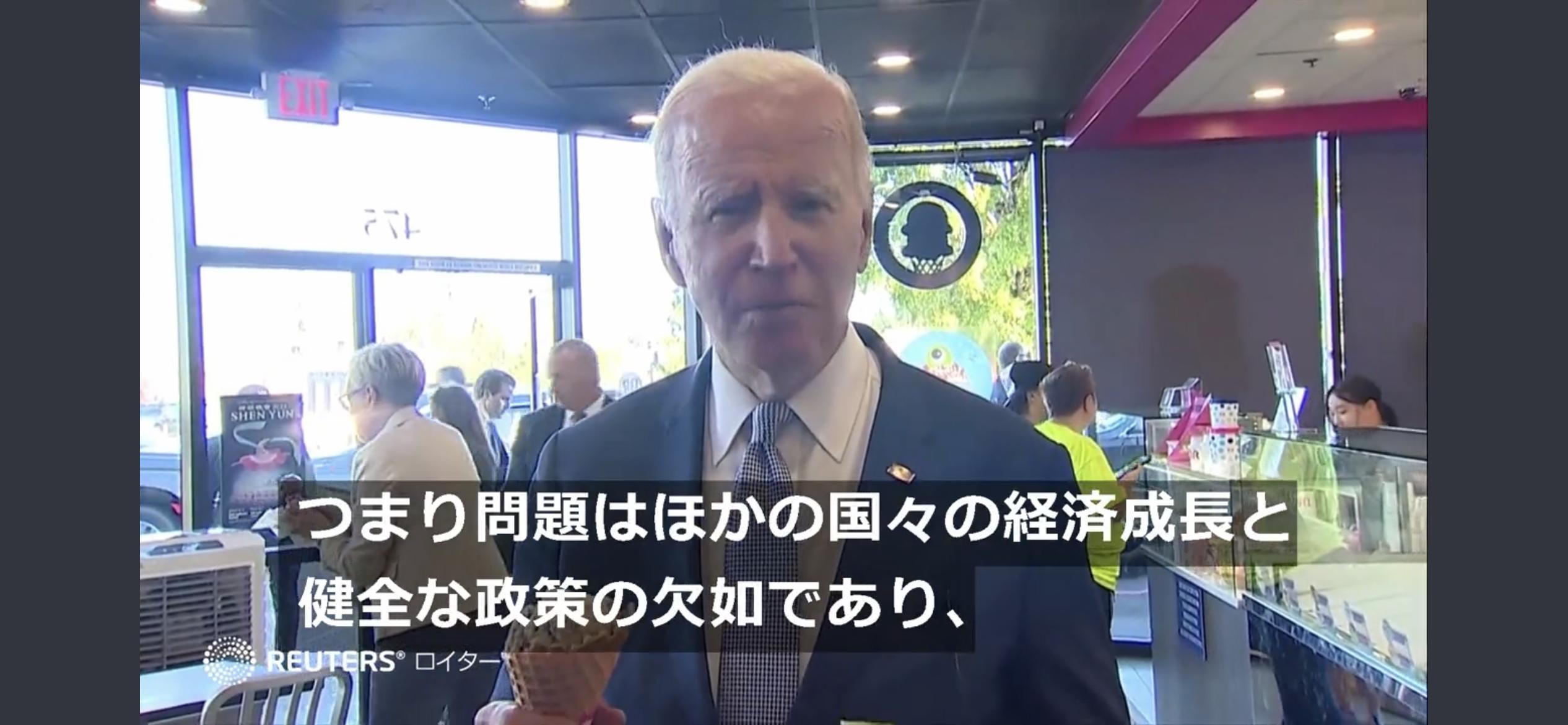 バイデン大統領は、ドル高について懸念していないと述べ、「問題は他国に経済成長や健全な政策が欠如していることだ」とアイスクリームを食べながら語った。