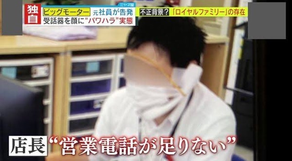 【画像】ビッグモーター社員、受話器を輪ゴムで頭にくくりつけて仕事させられていた