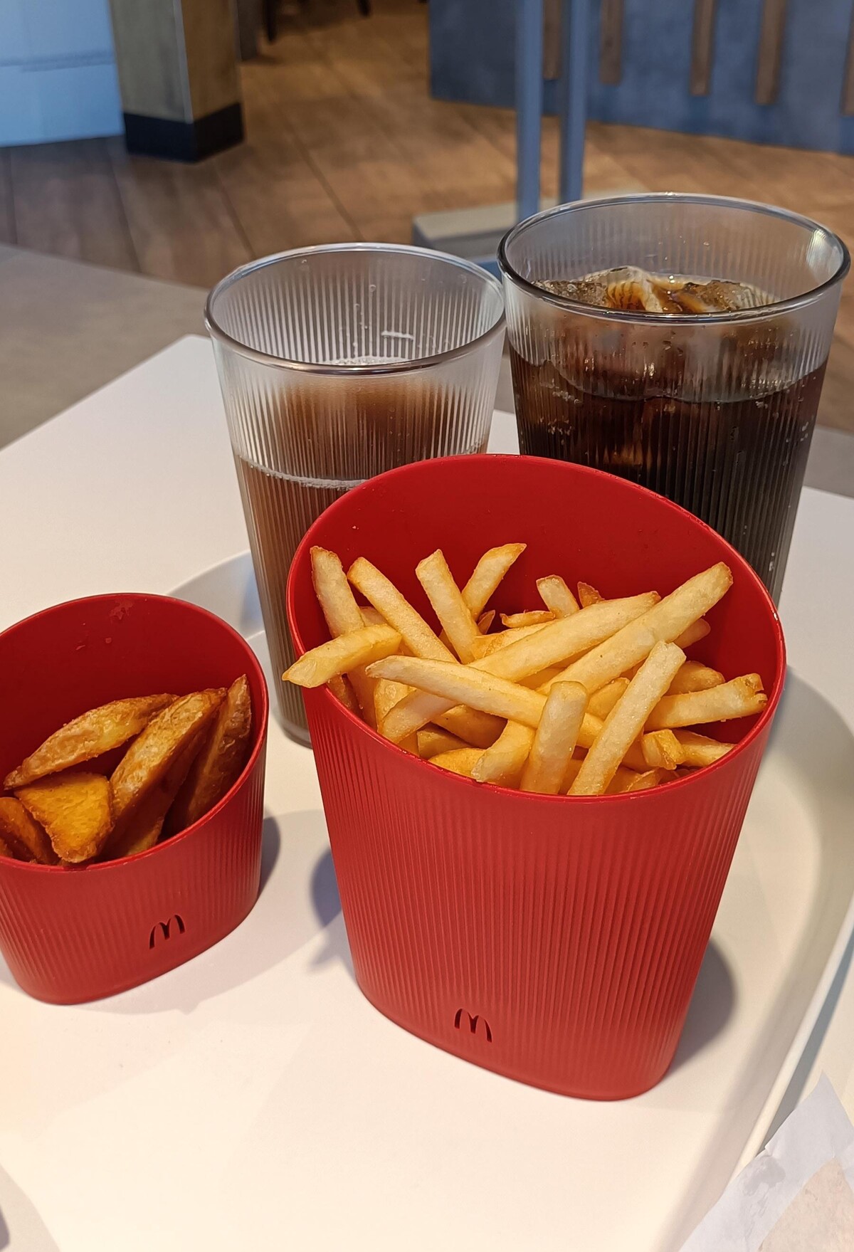 例えば、マクドナルドではポテトの容器がセラミックに、コップがガラスになります。