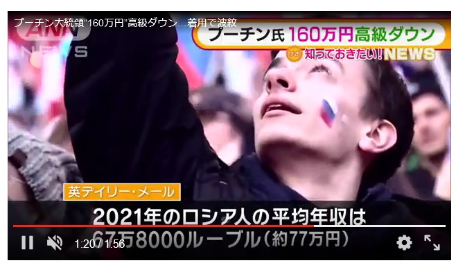 英デイリー・メール:「2021年のロシア人の平均年収は67万8000ルーブル(約77万円)、プーチン氏のダウンジャケットの半額以下である」