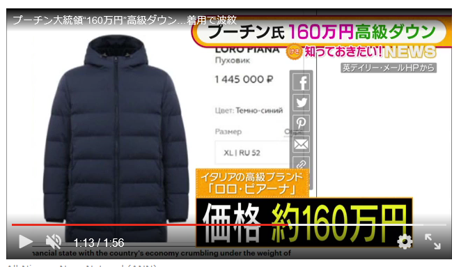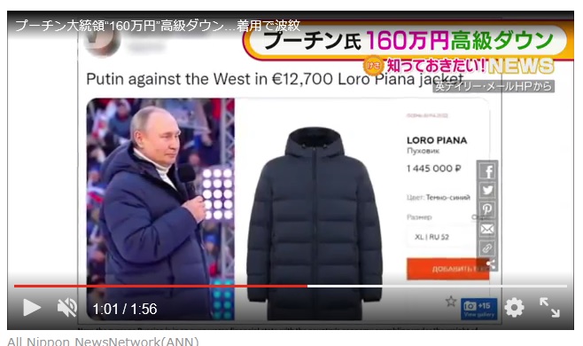 英デイリー・メール:「国民がソビエト時代の貧困への回帰に直面するなか、プーチン氏は1万3185ドルのデザイナーズジャケットを着ながら、誇らしげだった」