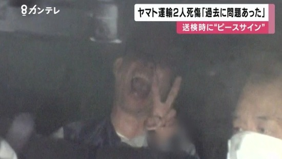 【画像】ヤマト運輸刺殺犯、マスクを拒否し報道陣に笑顔でピース・・・