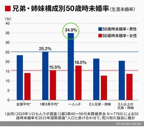 【画像】一人っ子の40%、一度も結婚できずに生涯を終える模様・・・